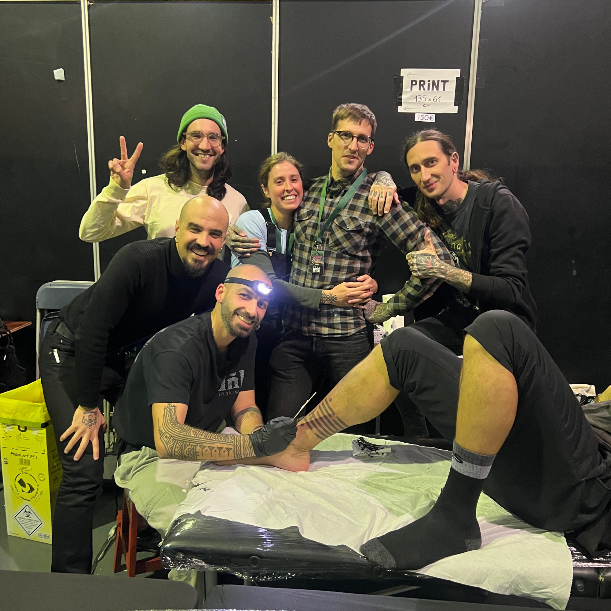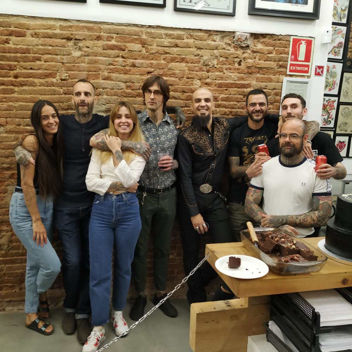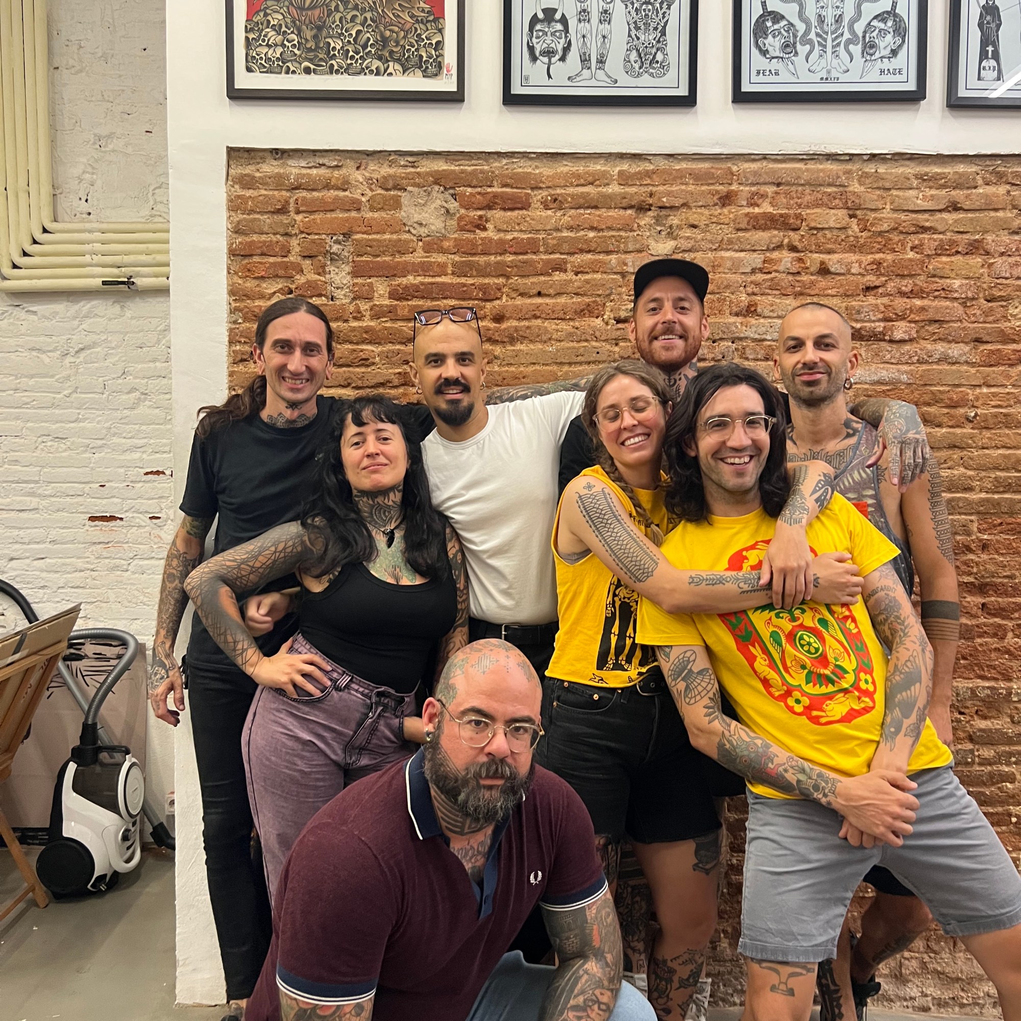 En la apertura y previamente a ella también, nos acompañaron Anana y Nacho Eterno. Además, pudimos contar con la compañía de nuestro amigo Mark Mason durante los veranos. Desde entonces, el grupo ha crecido muchísimo y pasado por varios e inevitables cambios. A día de hoy somos Carlo, Rotor, Anana, Iñaki, Tayri, Pablo Sinalma, Lean, Misharuka, Olracle III, Miriam, Vitorio y yo mismo. También en una corta etapa nos acompañaron Jorge Teran y Numi. Además, encabezando la lista de sospechosos habituales, hemos tenido con nosotros a Rafa de Blas en diversas ocasiones. Y sin tatuar pero sabiendo mucho de tattoo, agendas, y redes sociales, nuestro amigo y manager precovidiano Oriol. Cerrando el bloque nuclear, no nos olvidamos de Oliver que nos ha echado una mano en eventos y viajes siempre que se lo hemos pedido.