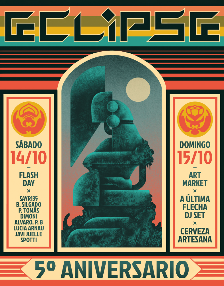 Al día siguiente, el domingo 15 de octubre, montamos un art market con gente animosa vendiendo su artesanía y movidas autoeditadas además de contar con nuestra propia selección de merch por parte de los residentes de Eclipse Tattoo. Para amenizar tanta intensidad, cerveza artesana de calidad y A Ultima Flecha pinchando su set durante toda la jornada.