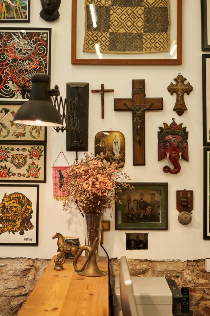 Para acabar, curiosos vosotros colegas y clientes, si os da por ejercitar el dedo haciendo scroll en nuestro instagram, podréis ver la enorme cantidad de trabajo que hemos sacado adelante en estos cinco primeros años. Tattoos, merch y arte original distribuido por todo el mundo, publicaciones, mercadillos, exposiciones, flash days, presentaciones de libros y como no…convenciones internacionales también. Hemos creído siempre en hacer las cosas como un colectivo y eso nos ha llevado a menudo un esfuerzo mental y físico extra, pero ha valido la pena. Tenemos la pared llena de polaroids en las que aparecéis con nosotros para dar buena fe de ello.