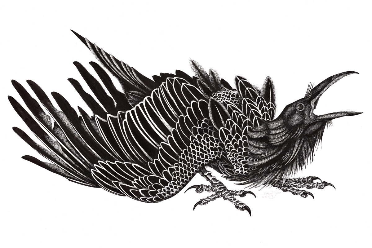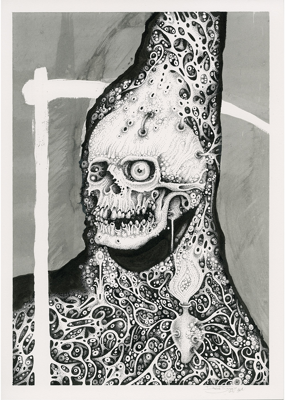 Eclipse Original artwork Rohrer & Klinger ink plus acrylics on white natural Arches, 300 g/m2 (140lb), 100% cotton, acid free, archival standard paper. 21 x 29,7 cm Single piece.