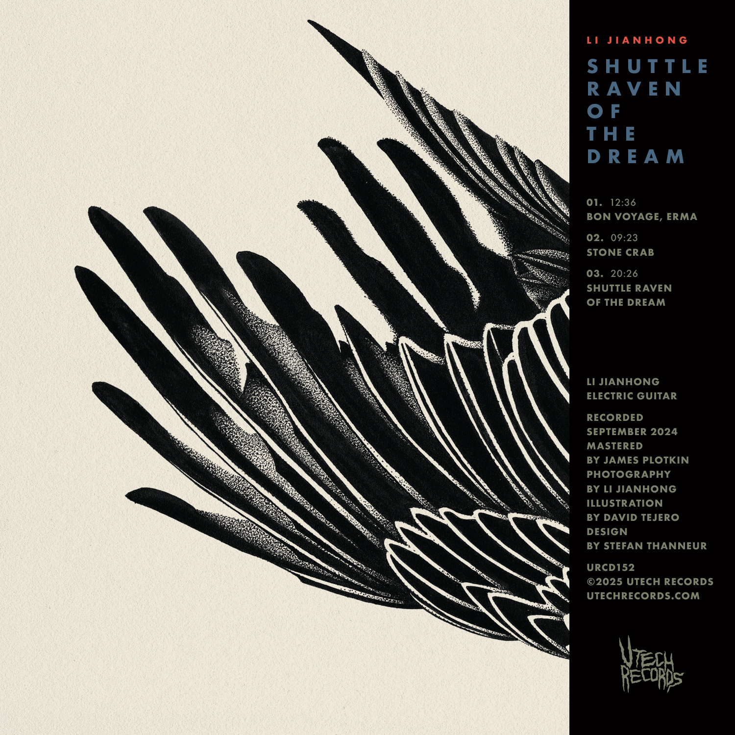 Shuttle Raven of the Dream is his fourth release on Utech Records, following 2009’s Lo Pan and 2012’s Go Back to the Sirius (both as part of the duo VagusNerve) and 2020’s Wanghai Gang. Where that album offered a single 46-minute live piece, Shuttle Raven consists of three studio recordings ranging in length from nine minutes to nearly 21.