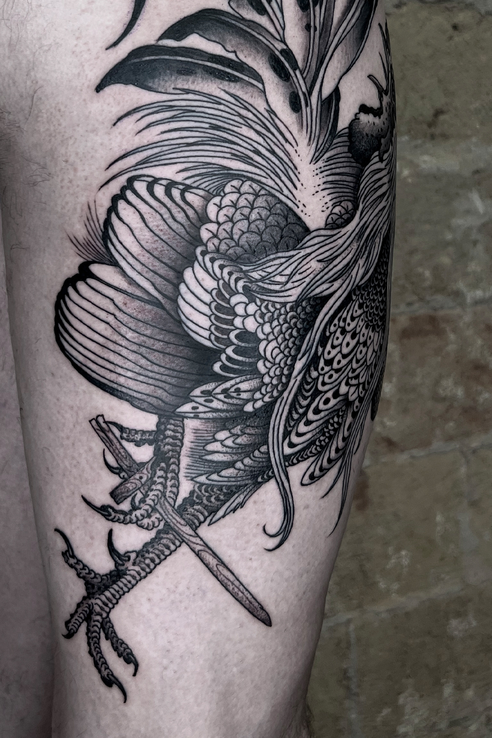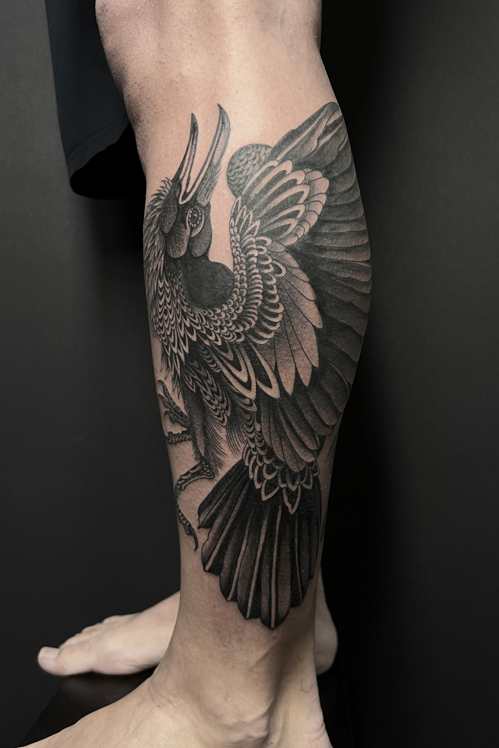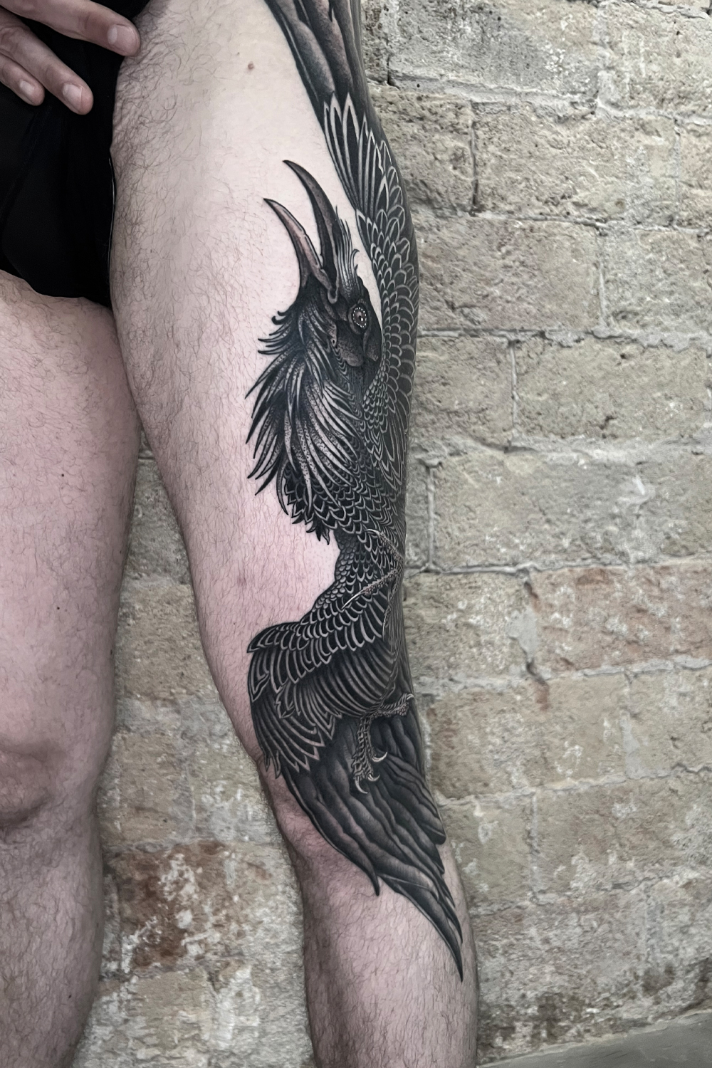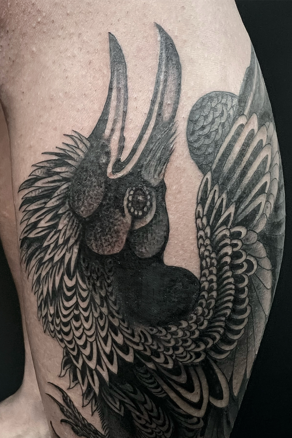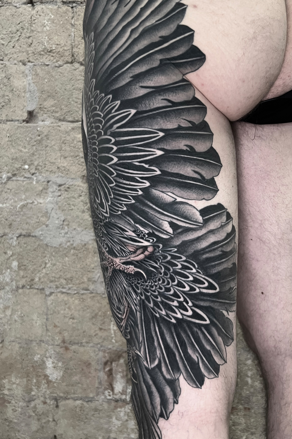 Antes de empezar el verano toca hacer repaso de los tattoos hechos en estos últimos meses. Por tamaño y esfuerzo, el primero es este gran cuervo para Marcos, que ha estado viniendo desde Madrid directamente para hacerse una sesión tras otra en un tiempo record. Estoy muy contento con el resultado con el que es hasta la fecha el cuervo más elaborado y grande que he tenido la oportunidad de realizar. Ha sido un reto eso sí, entender el mejor encaje posible cuando tienes a la vez tanto espacio para trabajar pero has de colocar lo mejor posible todos esos grupos de plumas.