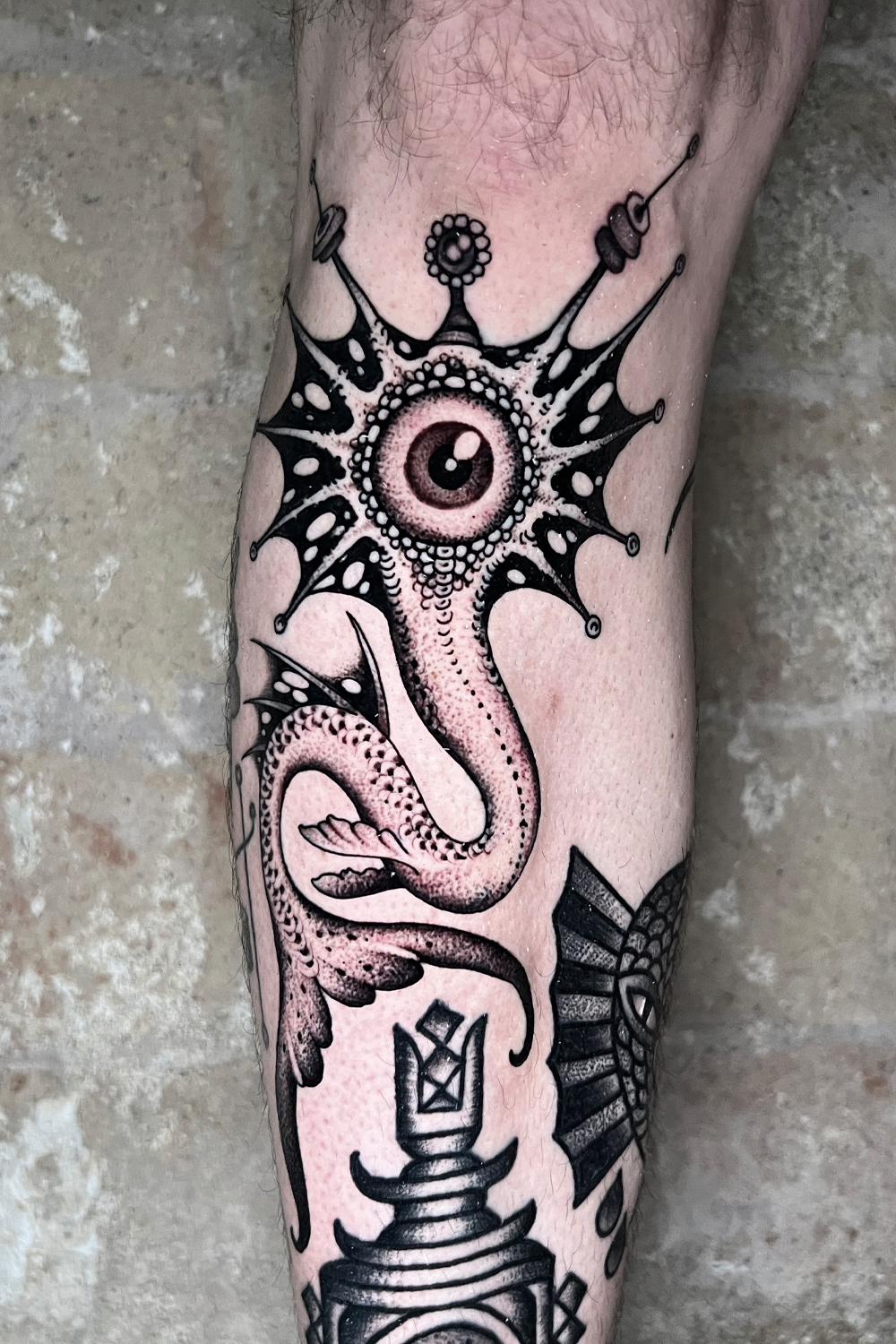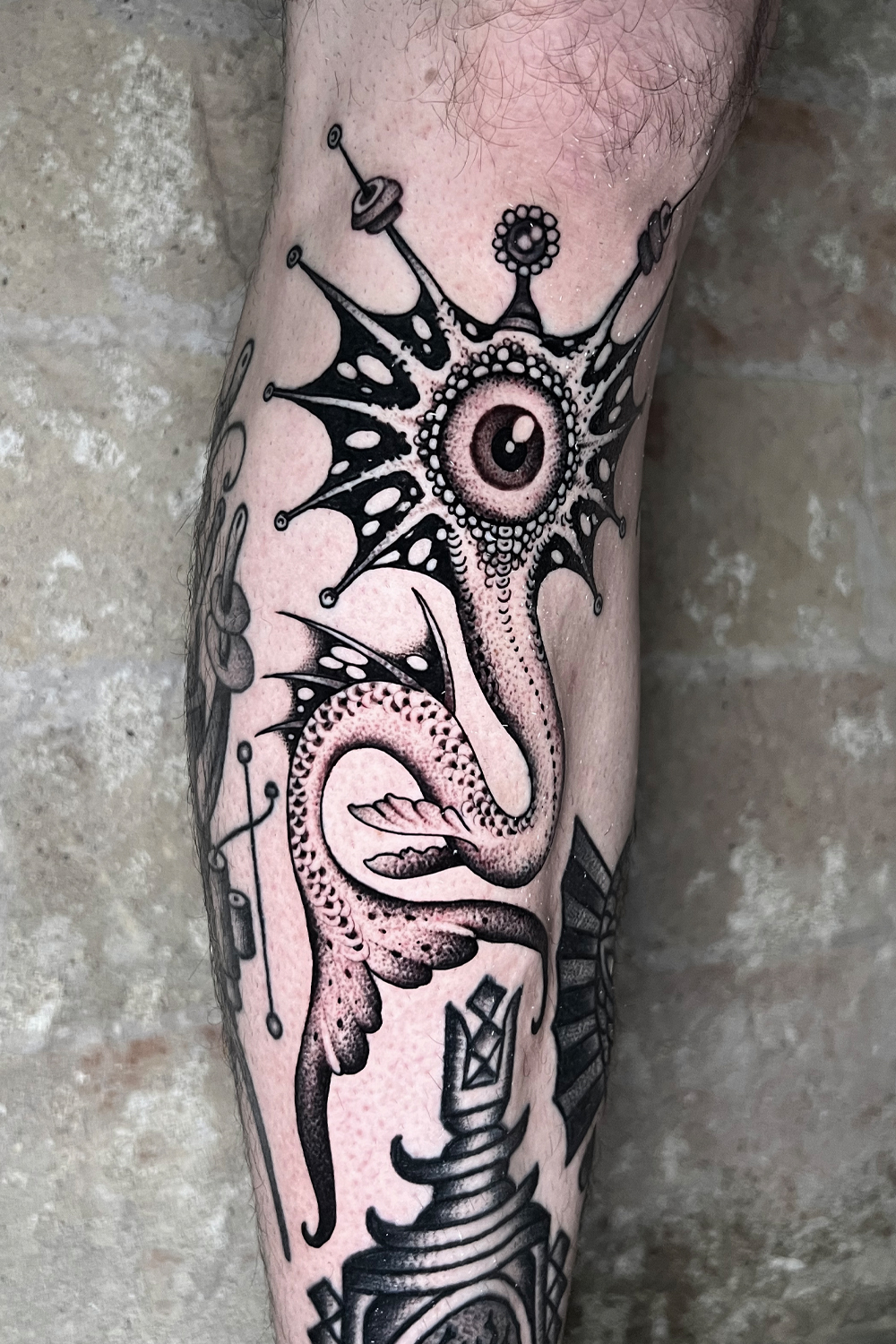También ha habido espacio para tattoos más pequeños ya fuera en Eclipse Tattoo Barcelona o en la Convención de tatuajes de Leeds. Ya sabéis que trabajo todos los tamaños y me siento cómodo con un rango de ideas muy amplio. Desde sirenas a mis animales del tiempo, como podéis ver aquí abajo.