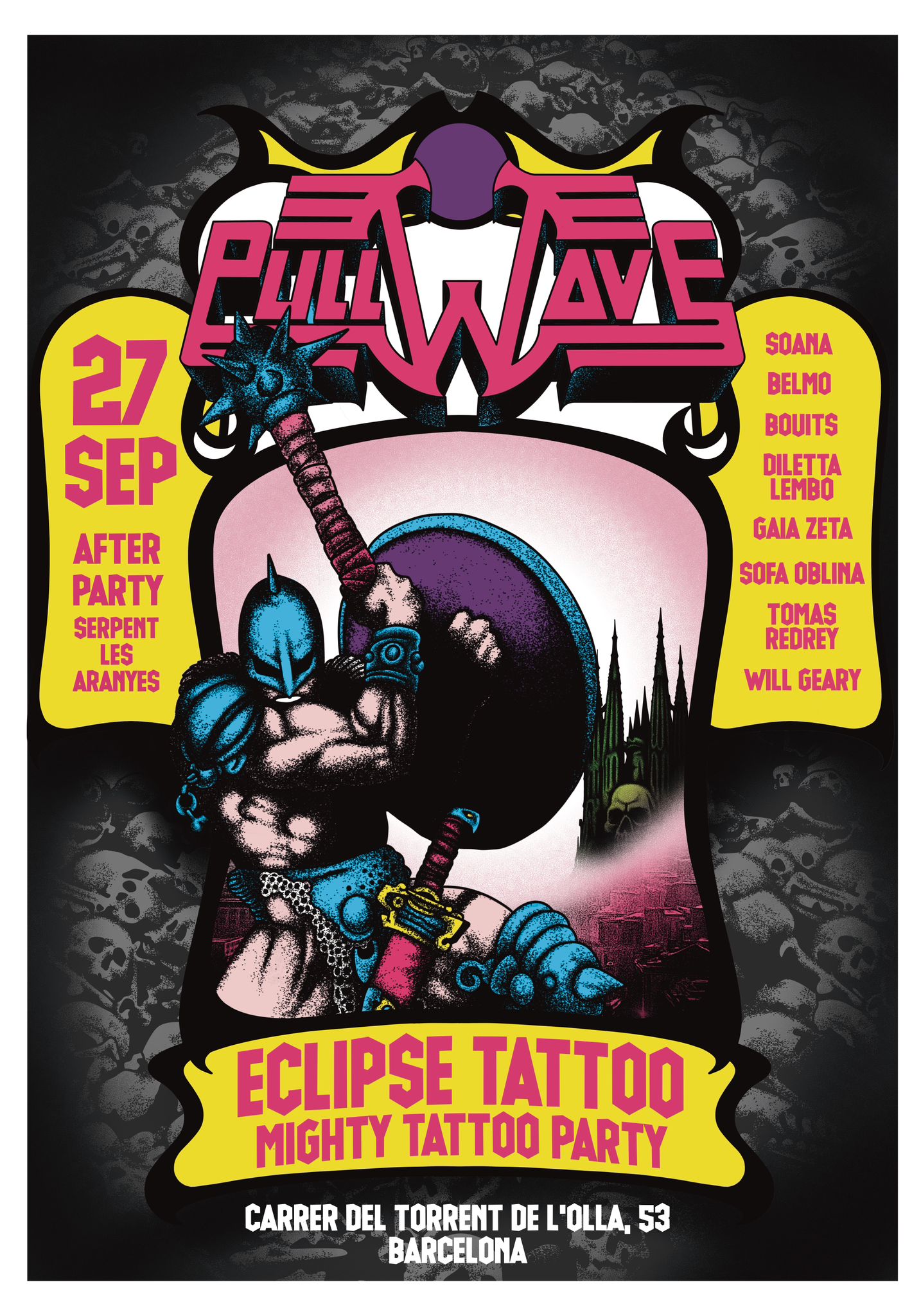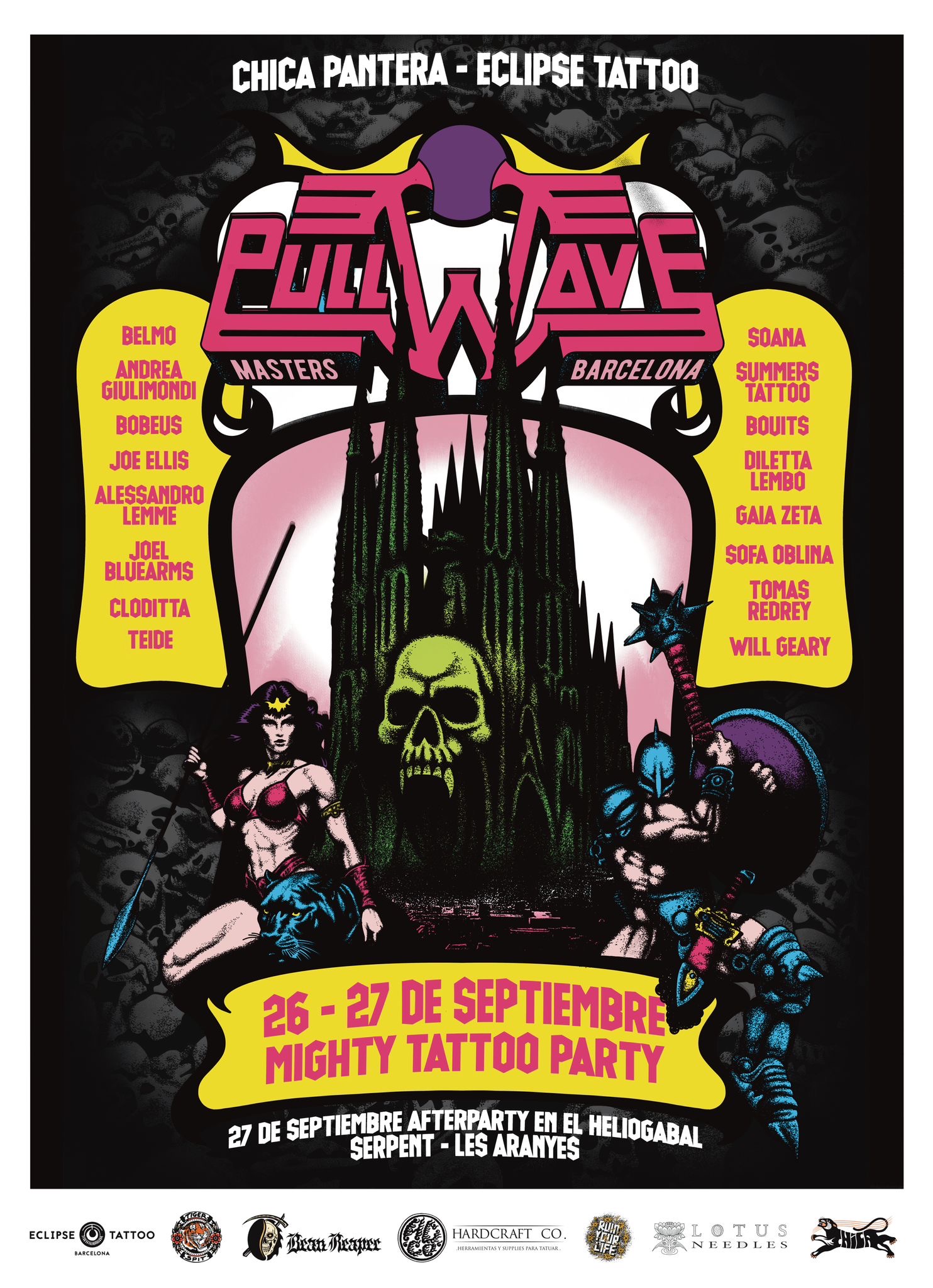 Los días 26 y 27 de Septiembre podréis tatuaros en Chica Pantera y Eclipse Tattoo respectivamente, chequeando qué artistas trabajan en cada estudio. Os dejo la lista de guerreros pullwave: