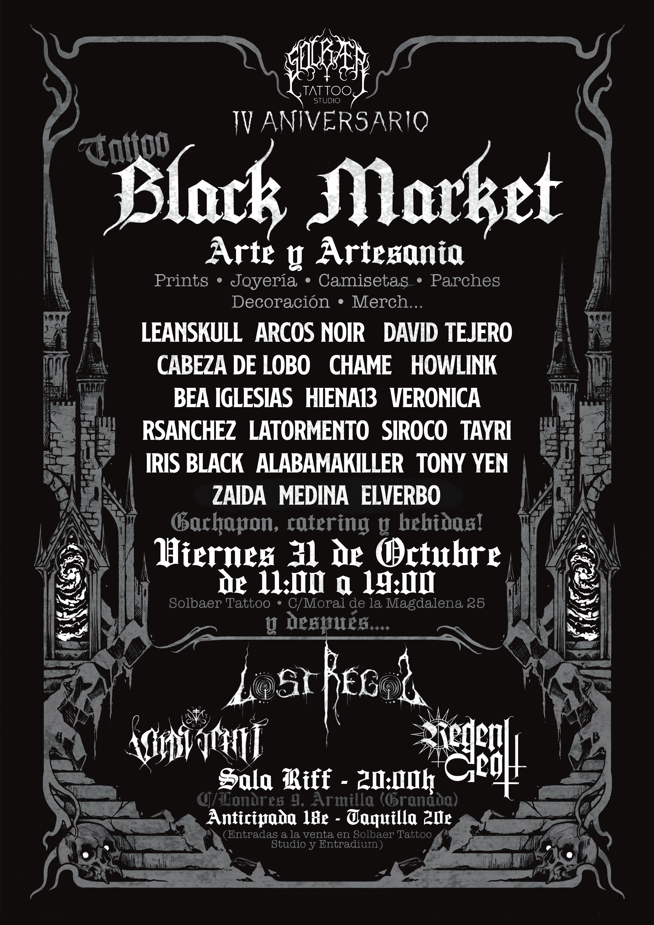 SOLBAER TATTOO Granada 30 Octubre 31 Octubre mercadillo 1 Noviembre citas: david@davidtejero.com