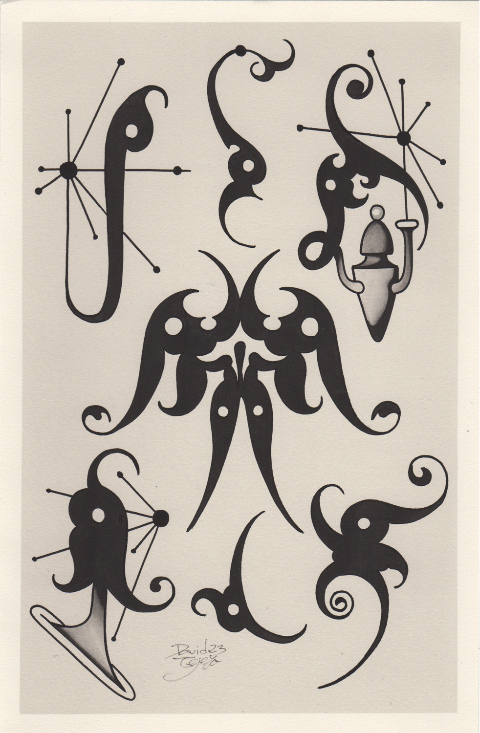 Rohrer & Klinger ink plus acrylics on white natural Arches, 300 g/m2 (140lb), 100% cotton, acid free, archival standard paper.