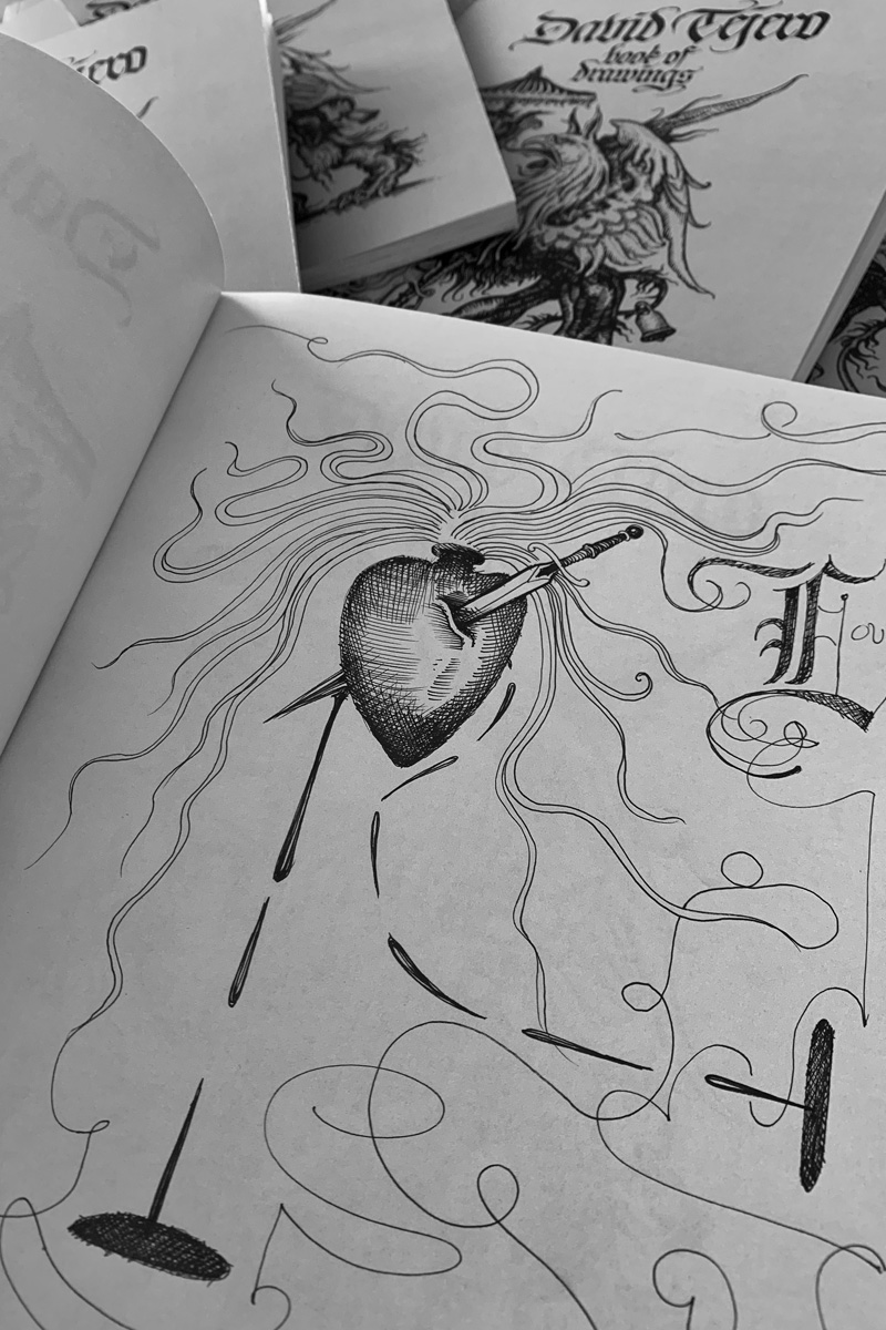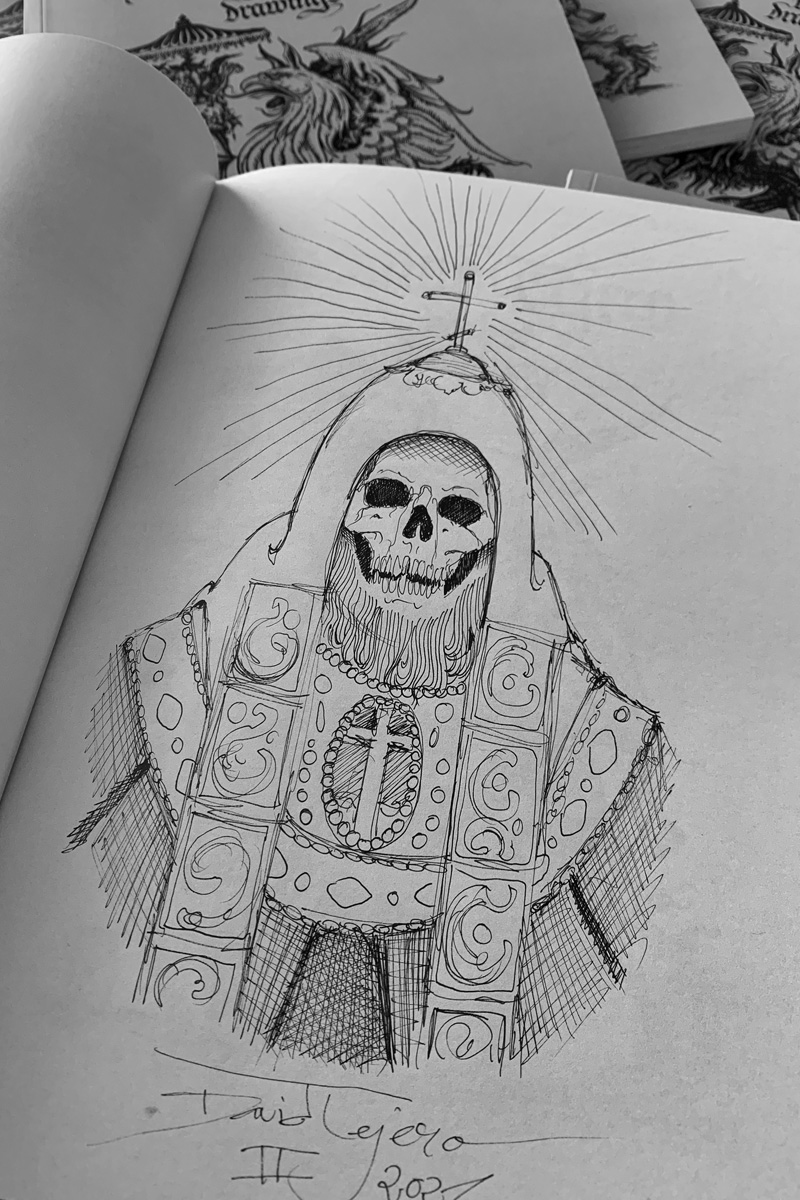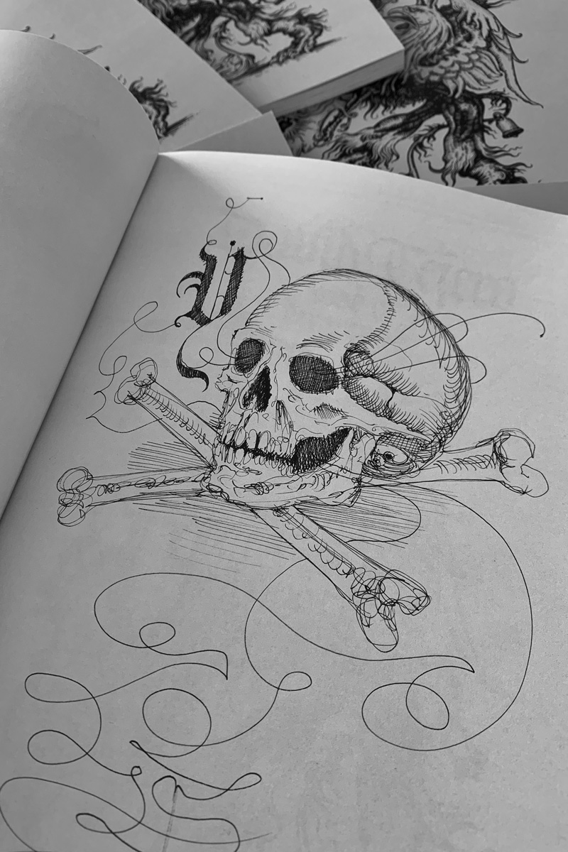 After two years of gathering and selecting many old and recent drawings, my book is finally here. Printing suffered some unexpected delays due to technical problems but we made it in the end! This book contains 128 pages of sketches, tattoo line drawings and preparatory illustrations. My intention was to mix up a personal selection of work that has driven me through 14 years of tattooing experience. A lot has happened during this time and it’s been really funny to search and find old stuff that I was able to link with my most recent work. Somehow, noticing a technical evolution but remaining the same in many creative ways. In those pages, old timers are alongside new comers…precisely for this purpose.